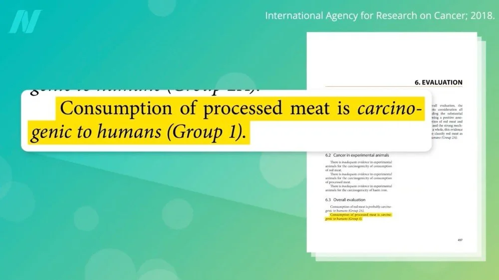 "The International Agency for Research on Cancer (IARC) classifies processed meat as a Group 1 carcinogen (meaning it is carcinogenic to humans), and red meat as a Group 2A carcinogen (meaning it is probably carcinogenic to humans). (Background section)