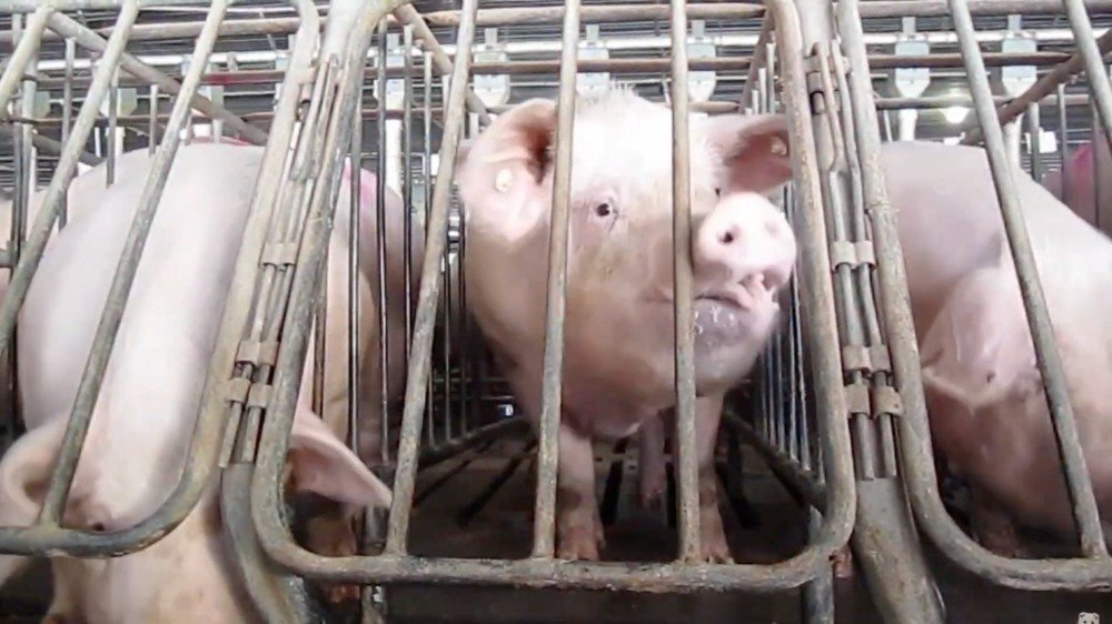 Mother pigs live trapped in crates too small to turn.²