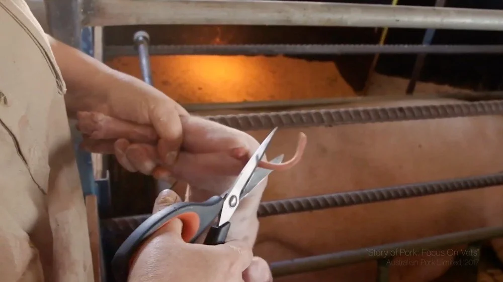 "In the first few days of life, most piglets in commercial production undergo one or more painful husbandry procedures. These may include teeth clipping, tail docking, and/or castration. These procedures are often conducted without analgesic or anesthetic drug usage for pain relief, even though they are painful for the piglet..." (Introduction)